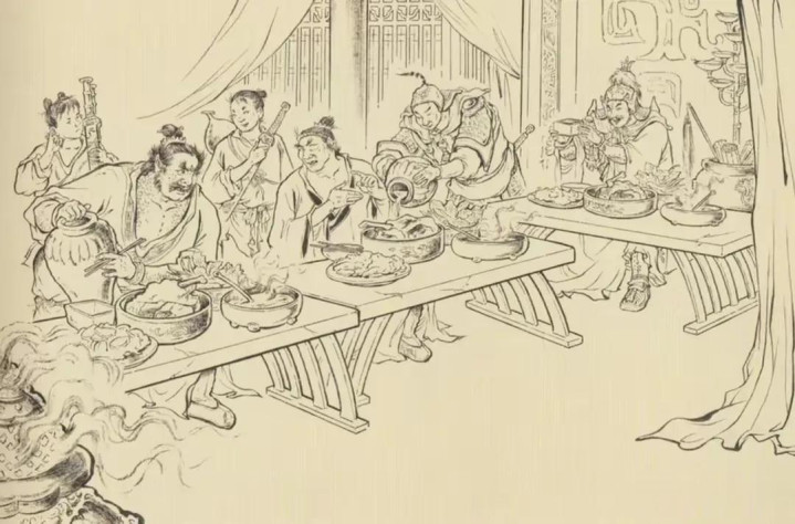 说罢,他猛地将酒碗摔在地上,碗片四溅。
